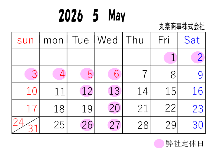 【営業日変更のお知らせ】 弊社では、2025年1月より、毎週水曜日、第2、第4火曜日を定休日とさせていただくこととなりました。 皆様には、大変ご不便をお掛けいたしますが、ご理解くださいますようお願い申し上げます。
